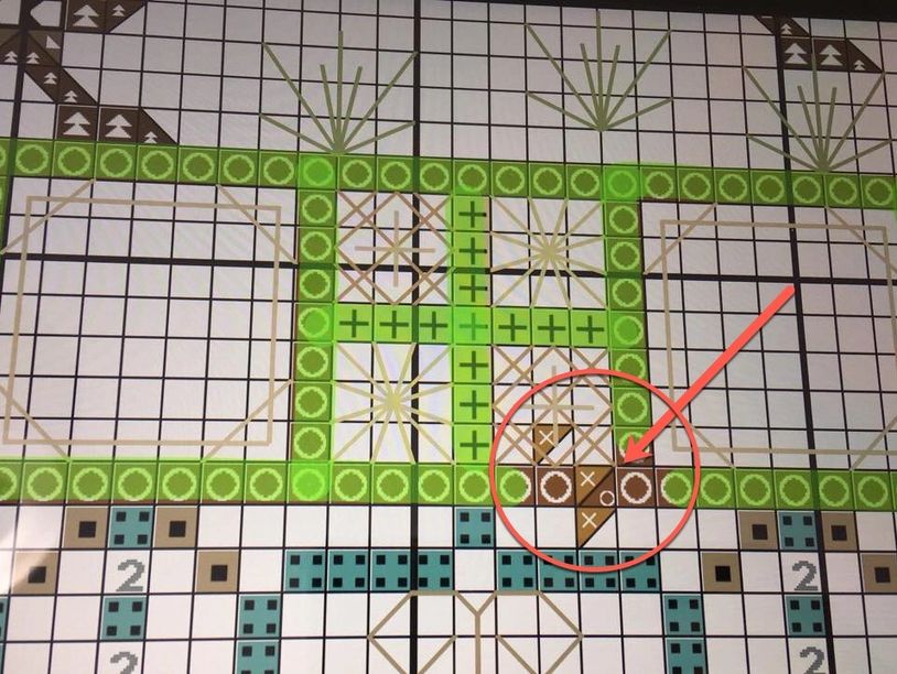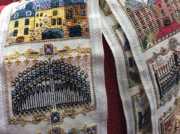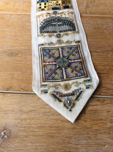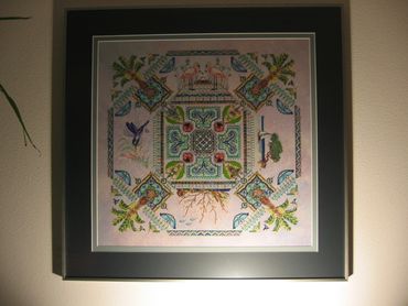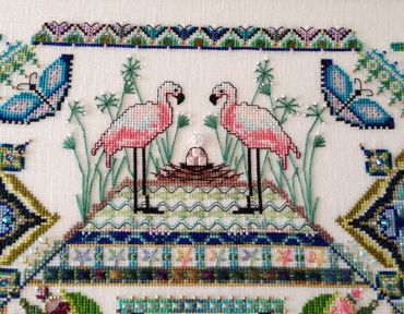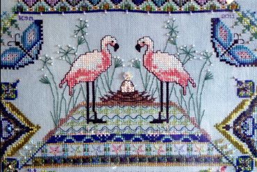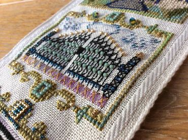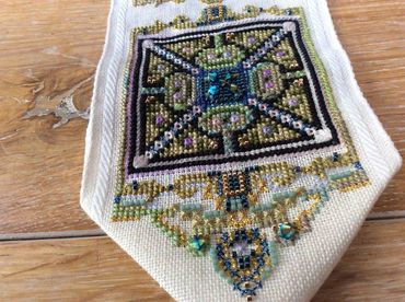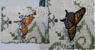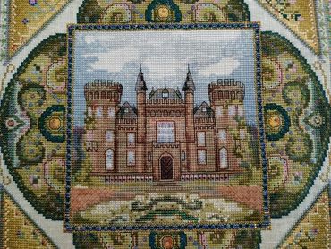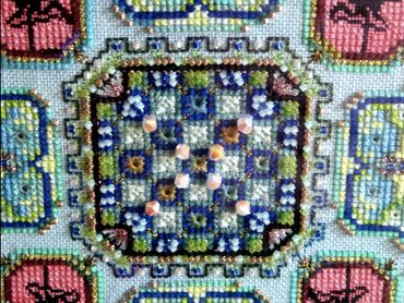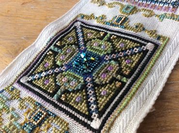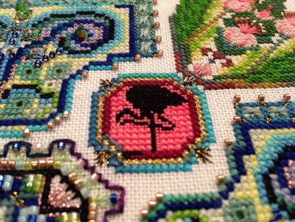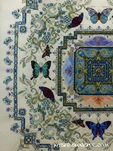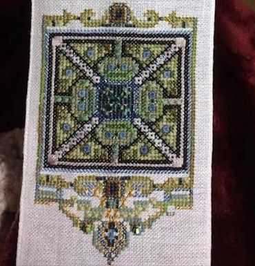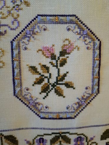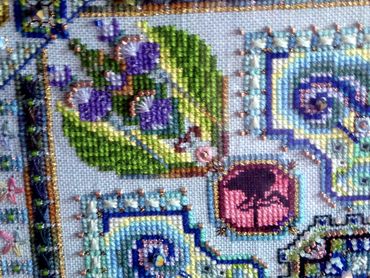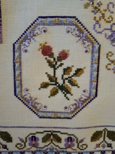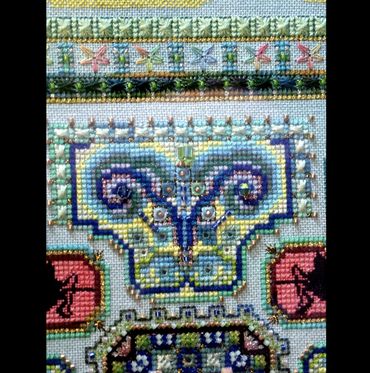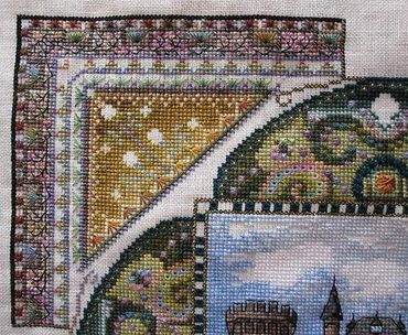 There are several erroneous fractional stitches charted within the bottom border; please disregard