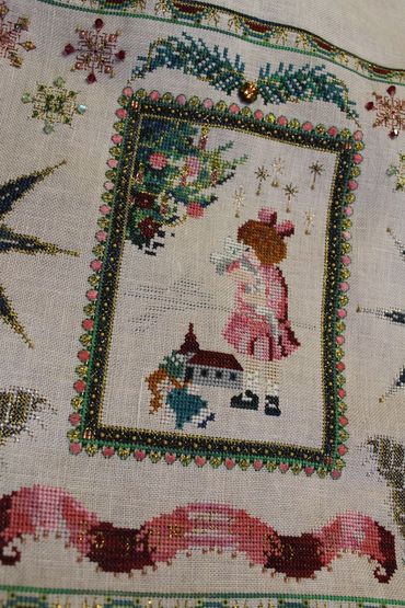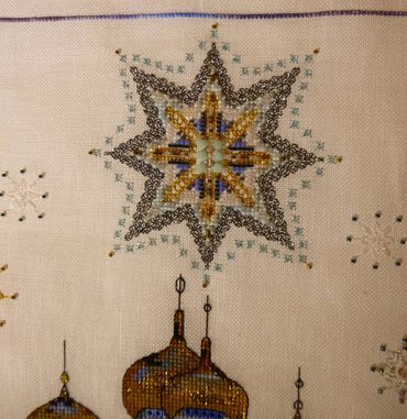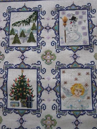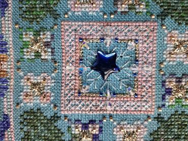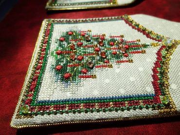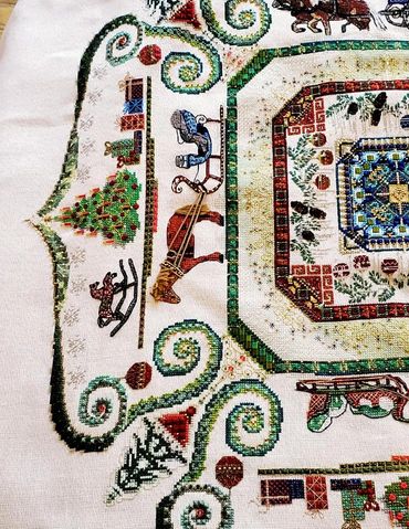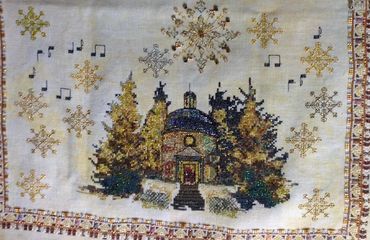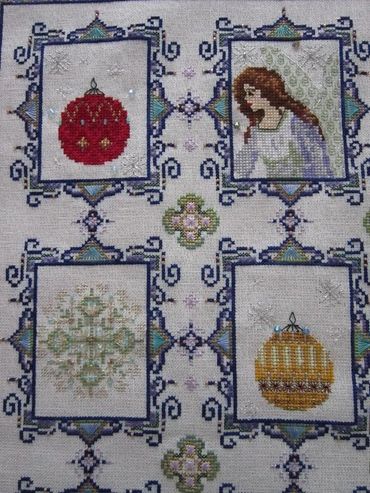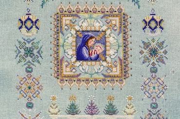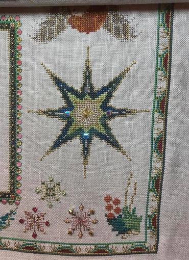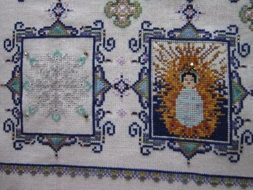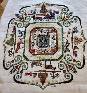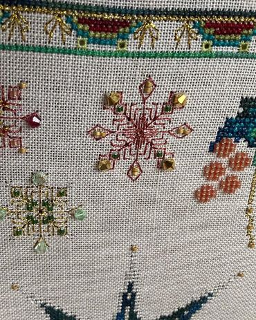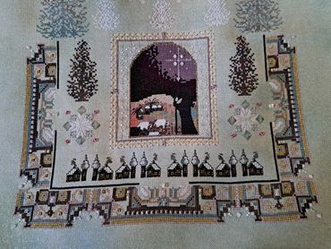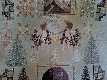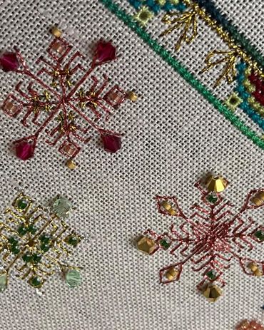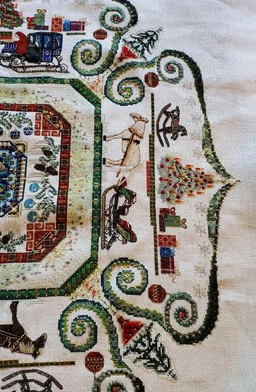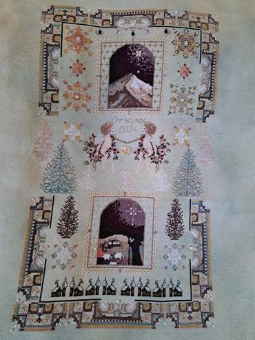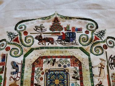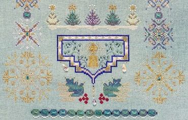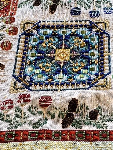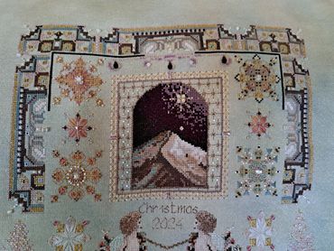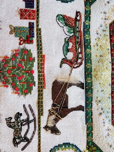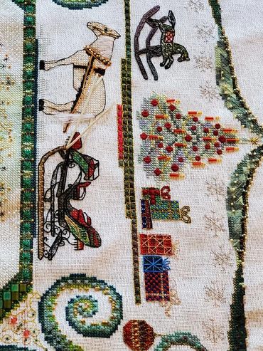 The Chatelaine Christmas Mandala Mystery was one of Martina's last designs and for this reason, the usual instructions are missing. Katherine stitched the above making the choices of floss color and beads based on her best interpretation of the chart. She also chose to substitute RG Super Suede for the horse reins and RG Rainbow Angora for the horse manes and tails.