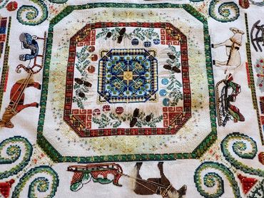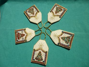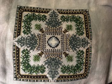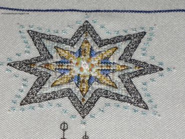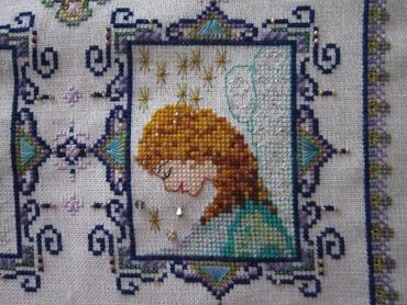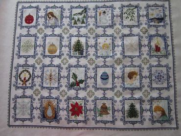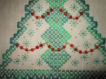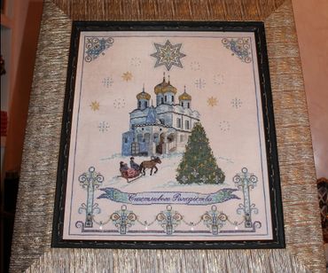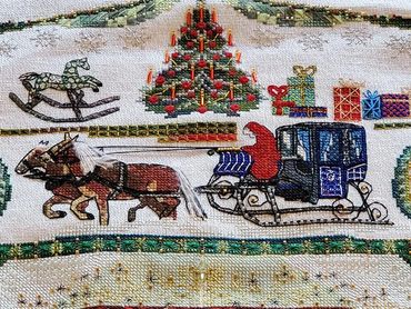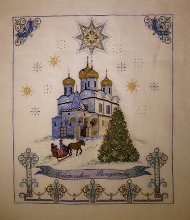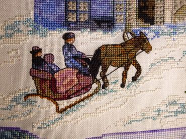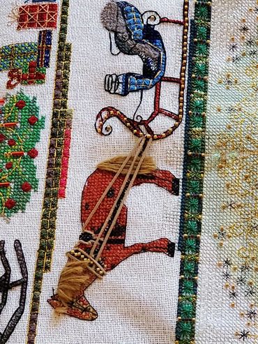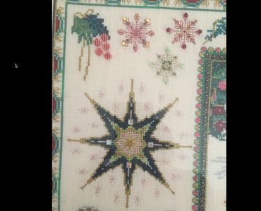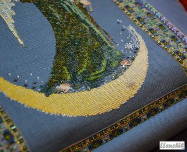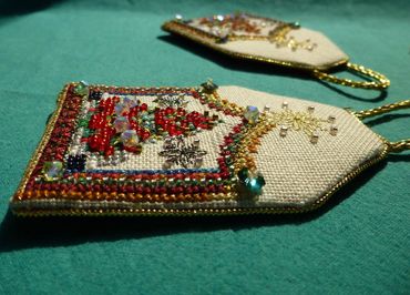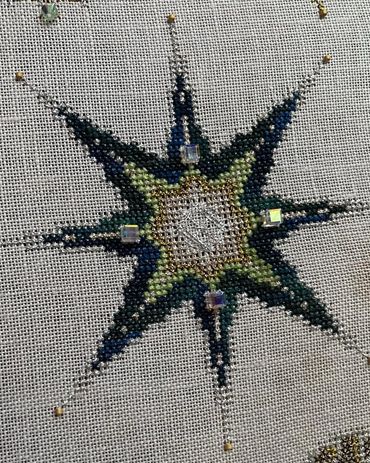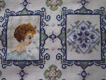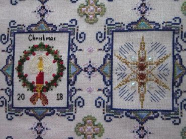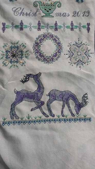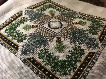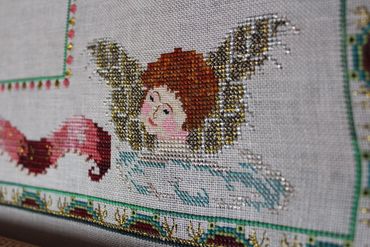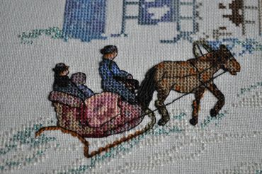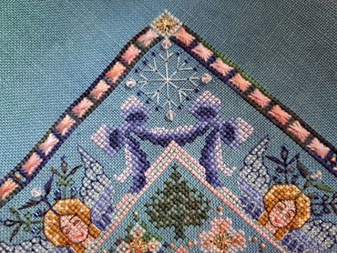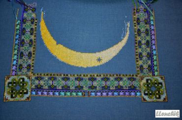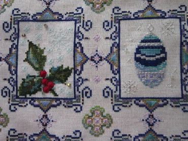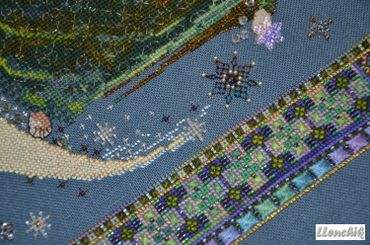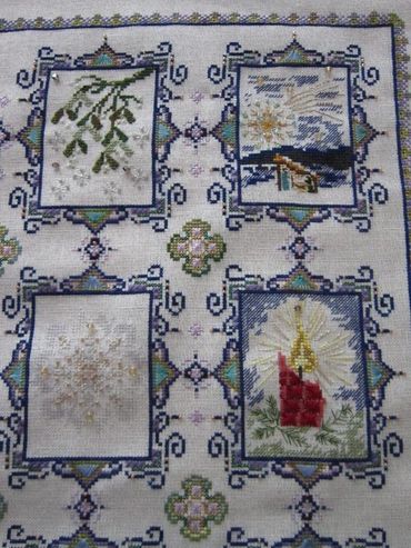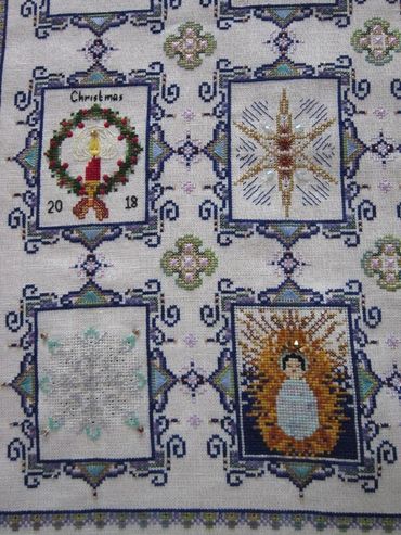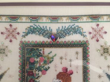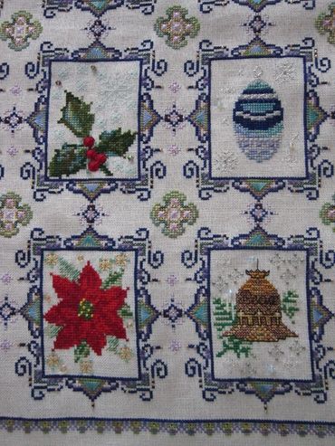 The Chatelaine Christmas Mandala Mystery was one of Martina's last designs and for this reason, the usual instructions are missing. Katherine stitched the above making the choices of floss color and beads based on her best interpretation of the chart. She also chose to substitute RG Super Suede for the horse reins and RG Rainbow Angora for the horse manes and tails.
