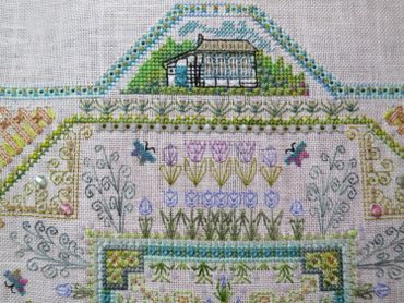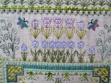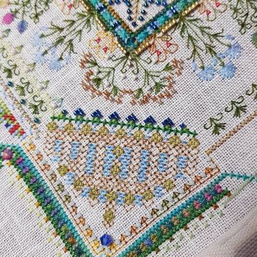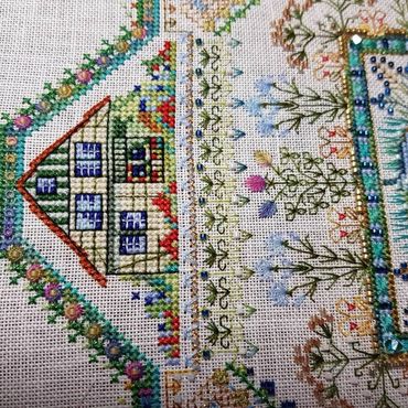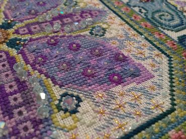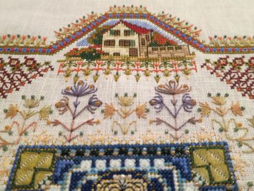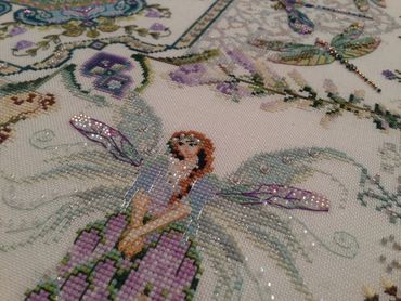The first is the The Appleblossom Fairy. She will wear over-one blossoms and beads in her  hair - her lovely face is "over one" too - her dress will be a symphony of creamy rose shades and lightest greens...Her wings will glitter and sparkle with beads, braids and a few crystals. She will be surrounded by airy fogs and clouds of Springtime sunshine and weather...There will be rows and borders with intricate and detailed Blackwork/Backstitching/Special Stitches and Beadwork...And best of all : She will have 3 more sisters for Summer, Autumn and Winter..."