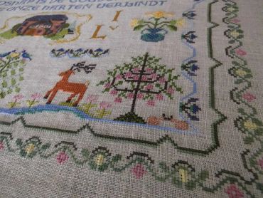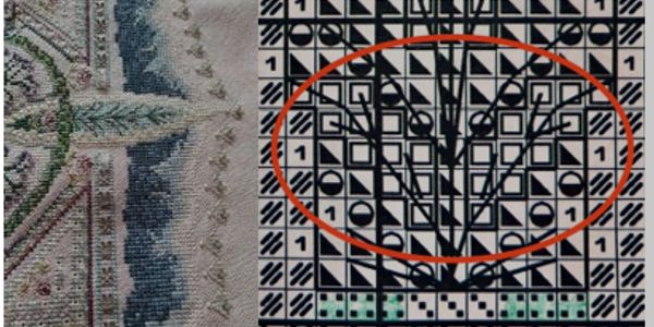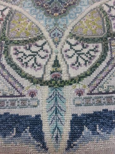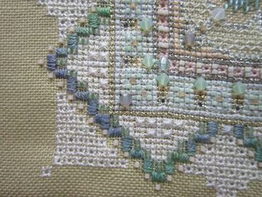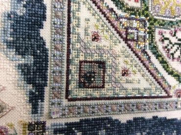 The instructions do not mention which fiber to use for the backstitching on the "Large Leafs". Martina confirmed that PB47 should be used here.