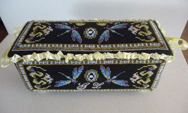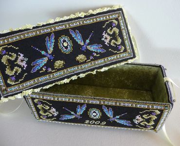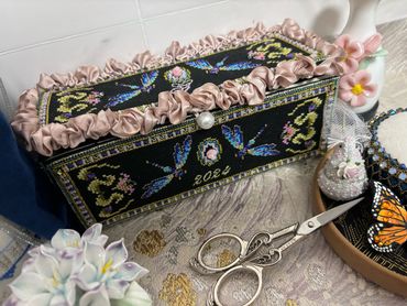 This gallery is dedicated to the stunning stitching toy designs that Martina gave us over the years. Scroll down to see all the amazing boxes, thread keepers and beautifully embroidered stitching accessories.